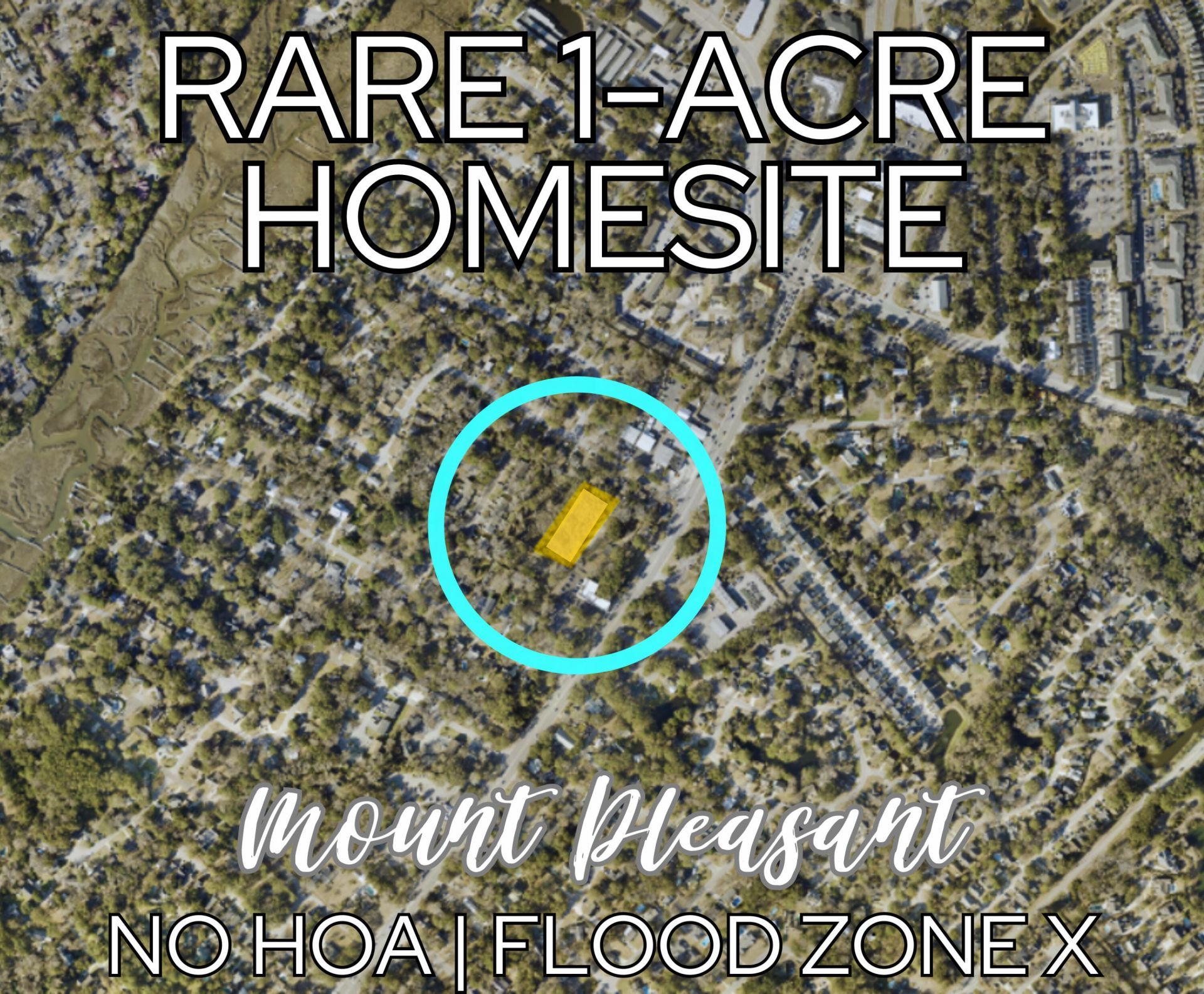 Now Offered at $999,000 -- Major Price Improvement. Exceptional value for a full one-acre homesite in the heart of Mount Pleasant's highly sought-after 29464 corridor.Zoned Charleston County R-4 (Urban Residential District) and located in Flood Zone X (flood insurance not required by lenders), this property offers flexibility, freedom, and convenience with no HOA restrictions.Tucked just off Chuck Dawley Boulevard, this private interior parcel presents a rare opportunity to build a custom estate home just minutes from Mount Pleasant's top-rated schools, the beaches of Sullivan's Island and Isle of Palms, Shem Creek, shopping, and historic downtown Charleston.Acreage in this central location is increasingly scarce--and opportunities at this price point are even more limited. This is a compelling opportunity for builders, investors, or end-users ready to create something special in one of the Lowcountry's most desirable areas.Buyer to verify zoning, access, utilities, and build feasibility. Property is being sold AS IS.