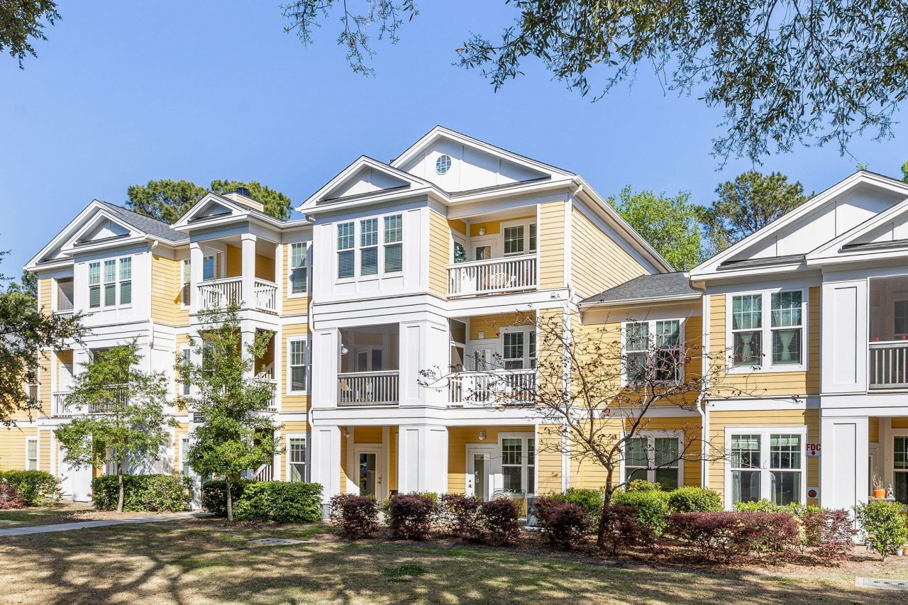 A rare find! Ground floor (no stairs) condo in a secure gated community in Area 42, close to beaches, downtown Charleston, and I-526. There is a foyer area with an office nook, open kitchen, breakfast bar, dining area, and open living room. The bedroom has an exceptionally large walk-in closet with shelving. Full bathroom has ceramic tile flooring and shower. There is a laundry room with a washer and dryer. The appliances have been recently replaced and the carpet is new as of October, 2025. Spacious covered front porch or patio area with a storage closet. The community amenities offer walking trails with beautiful landscaping, a pool, club house, workout facility, dog park, and car wash area. Boat storage may be available on a first come, first serve basis. Transfer fee may apply.