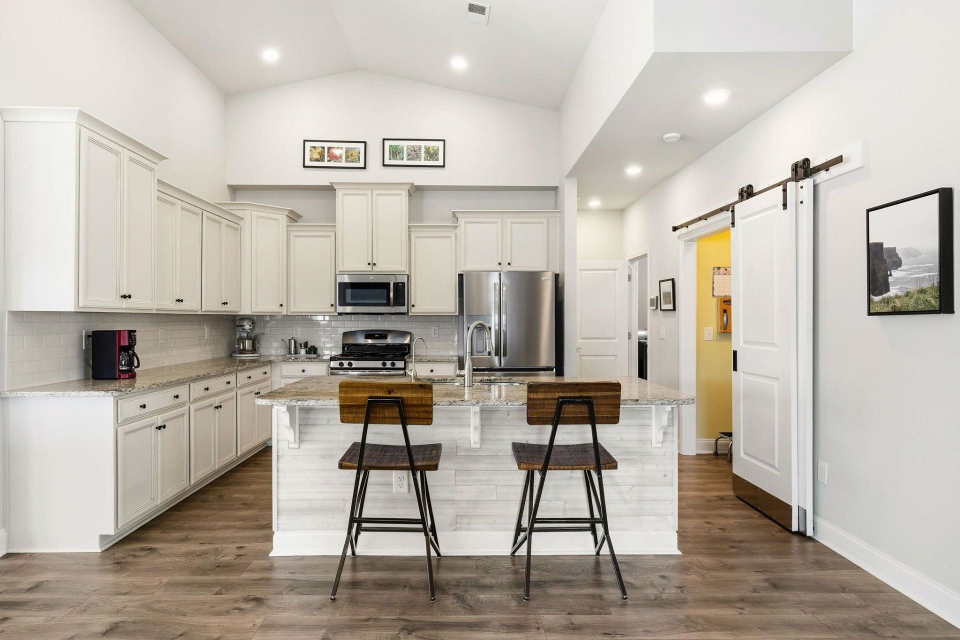 Welcome to this beautifully maintained single-level home located in the desirable Twin Oaks community of Murrells Inlet, offering the perfect blend of modern upgrades, coastal convenience, and low-maintenance living. This 2017-built residence features 3 bedrooms, 2 bathrooms, and 2,028 heated square feet, situated on a quarter-acre corner lot with peaceful water views. The open and functional floor plan is enhanced by a modern kitchen showcasing off-white 42 cabinetry, granite countertops, updated appliances including a refrigerator less than a year old, along with a water softener and reverse osmosis system for added comfort and efficiency. Thoughtful upgrades continue throughout the home with vaulted ceilings, a cozy fireplace, custom built-in window benches with storage, and a well-designed custom pantry maximizing organization and functionality. The primary suite and additional bedrooms are well-appointed, complemented by modernized bathrooms and a comfortable layout ideal for both everyday living and entertaining. Outdoor living is a true highlight with a screened-in porch and paver patio overlooking a serene water view, perfect for relaxing or hosting guests, while the corner lot provides additional space and privacy. The rare 3-car garage offers exceptional versatility with wrap-around shelving, workshop potential, and ample room for golf cart storage or additional parking. Residents of Twin Oaks enjoy community amenities including a pool, walking trails, and playground, all within walking distance of the home. Ideally located just 3.4 miles from Garden City Beach & Pier and 3.4 miles from the Murrells Inlet MarshWalk, within less than 2 miles of multiple golf courses, plus TPC Myrtle Beach around the corner, and just 9.8 miles to Market Common, this home places you minutes from dining, shopping, entertainment, and coastal attractions. Zoned for St. James schools with St. James High School located 4.9 miles away and the elementary, intermediate, and middle schools even closer, this property offers excellent access for families. With quick access to Highways 17 and 31 providing easy travel throughout the Grand Strand and up to the North Strand, this home delivers an exceptional lifestyle in a quiet, well-kept neighborhood close to everything Murrells Inlet has to offer.