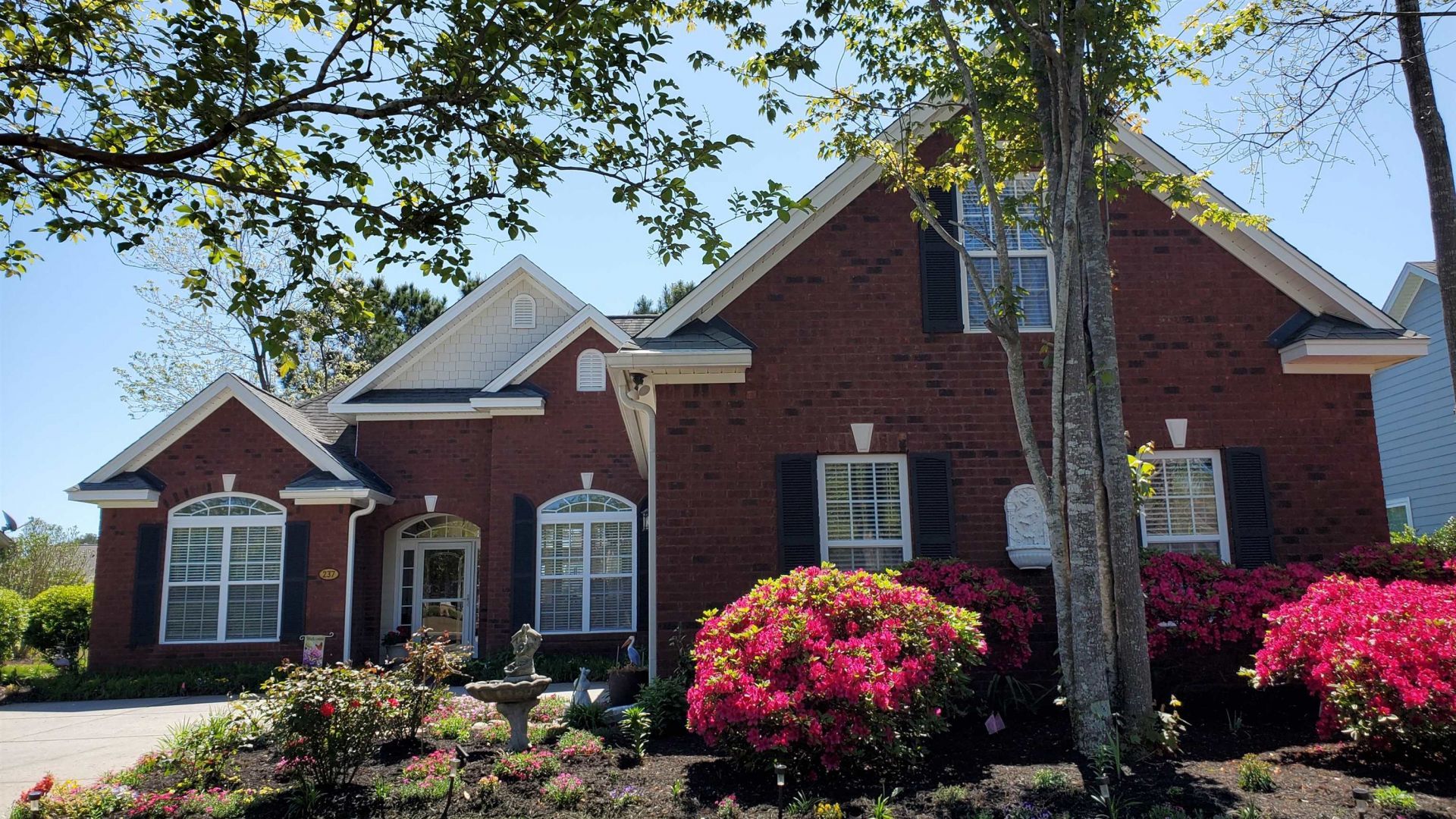 Beautifully landscaped & fountain-lined entrance leads to the gated Saint Davids section of Windsor Plantation. This brick front 3BR/3Bath home has it all! Fresh Paint inside & out, Pond view & numerous perennial garden landscaped areas thru-out property. Upgrades thru-out this lovely home include French Doors, Transom, Side-Light & Eyebrow-Arch windows, Cathedral & Presidential Tray ceilings, columns, bullnose corners and extended square footage of climate-controlled Garage, Bonus Room & Kitchen Breakfast Room w/Bay Window. Upgraded Lighting fixtures, ceiling fans, Hardwood flooring, tile & carpet. Kitchen countertops & backsplash have recently been upgraded to Quartz. In addition to the Breakfast Room there is a breakfast bar, pantry & Stainless-Steel appliances. Formal DR with columns & elegant LR, both have 12ceilings with double trays. French Door from LR leads to custom designed patio overlooking the pond. Primary BR suite with sitting area has Presidential tray ceiling & full Bath with vanity & double sinks and has floor to ceiling tiled Shower with Bench Seat and a large walk-in closet. This split floor plan offers privacy for guests with the 2nd BR & full Bath with additional linen/closet storage in hallway. Just off entry is the 3rd BR/Office with French Doors & Cathedral Ceiling. Upstairs is the extended Bonus Room & the 3rd full bath with floor to ceiling tile shower with bench seat. Long driveway allows space for multiple vehicles with courtyard entry to heated/cooled garage. Home warranty offered. Across the street is the Community Amenity Center Clubhouse with Fitness room, Kitchen, gathering room w/FP, 3 season Porch, Saltwater Pool, Spa Hot Tub & shallow pool with shade water feature as well as a bath house. Windsor Plantation is a natural gas community and close to major roads, golf and entertainment, shopping, restaurants and the???????????????????????????????? beach!