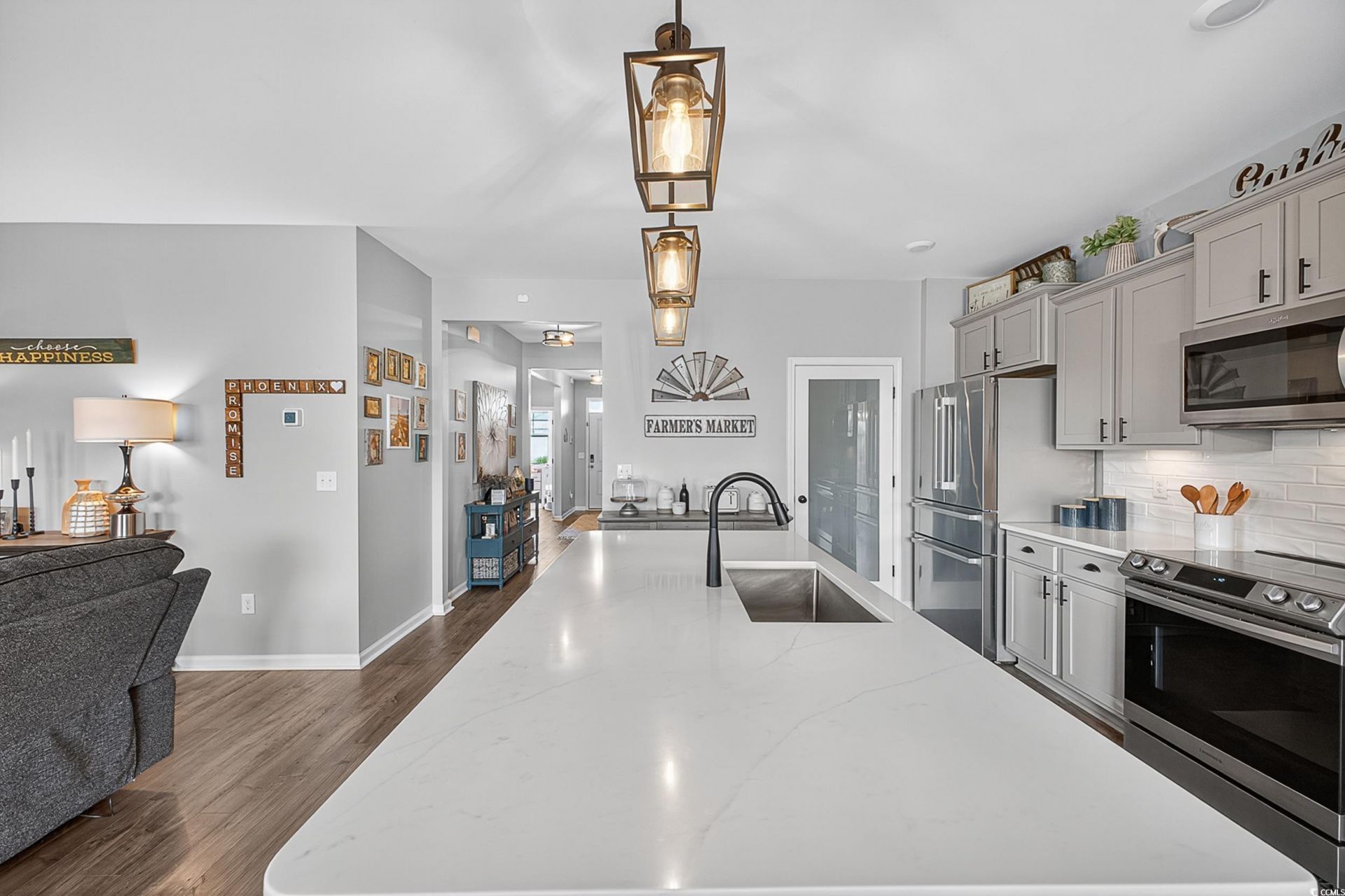 Best value for an upgraded home in Market Commonloaded with features you wont find in others nearby This beautifully upgraded 3-bedroom, 2-bath home offers an open layout with quartz countertops, stainless steel appliances, a spacious island with reclaimed wood detail, and a custom shiplap accent wall. LVP flooring runs throughout, leading to a renovated primary suite with a spa-like bath and custom barn doors. Kitchen refrigerator conveys, and home is equipped with a security system for added convenience Enjoy a fully equipped outdoor space with a screened porch, extended paver patio, outdoor shower, and fenced backyard with professional landscaping and irrigation. Epoxy garage flooring, ceiling storage, and decorative concrete curbing add even more value. Minutes from Market Common, dining, shopping, parks, and the beach. One of the most upgraded homes currently available in this price range. Seller is a licensed real estate agent. Seller is reviewing interestschedule your showing before any changes are made.