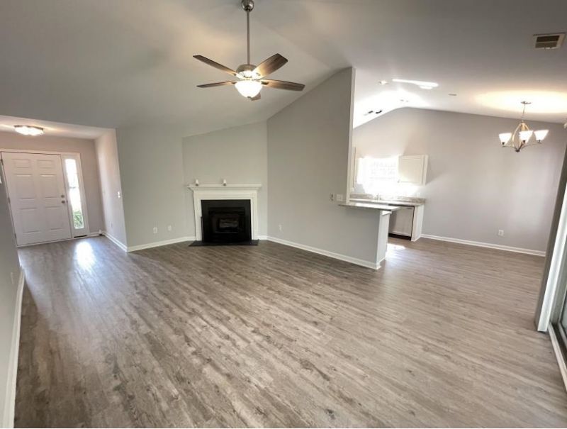 Enjoy the charm of this beautifully refreshed 3-bedroom, 2-bath home with a 2-car garage in the desirable Carolina Forest area! Recent updates include fresh interior paint and new LVP flooring throughout the entire home. The kitchen features granite countertops, stainless steel appliances, a pantry, and a convenient laundry area for a washer and dryer. The open floor plan seamlessly connects the spacious family room, kitchen, and dining area, creating an inviting space for everyday living and entertaining. The living room offers vaulted ceilings, a fireplace, and double sliding glass doors that open to the screened porch. The generously sized primary suite includes a vaulted ceiling, ceiling fan, and walk-in closet. The primary bath features a walk-in shower, soaking tub, and granite-topped vanity with a dedicated makeup station. Two additional bedrooms and a full guest bath provide plenty of space for family or visitors. Step outside to enjoy the screened porch overlooking a large, private backyard that extends into the wooded area behind the home, offering added privacy and a peaceful setting. Southgate residents enjoy access to a community pool, picnic area, and playground.
