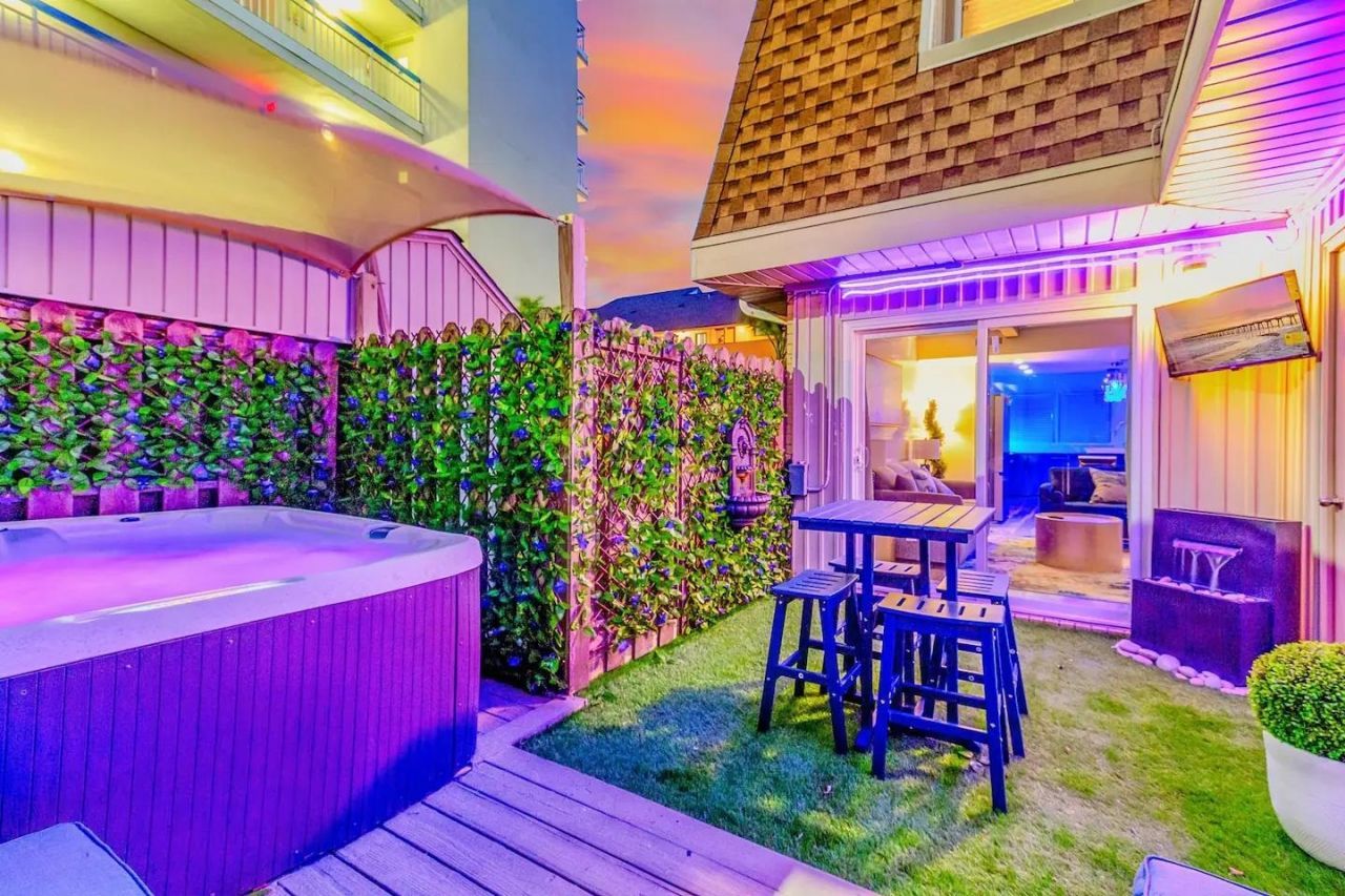 Just steps away from the best stretch of beach in the area, This beautiful newly remodeled end unit is a one of a kind with an extended large outdoor patio area. This gorgeous home is completely opened up with an amazing kitchen with extra cabinets, high end countertops , all new stainless-steel appliances with gold accents throughout the home. The half bath downstairs is fully remodeled with shiplap and gold touches. The large living room has a custom shiplap fireplace and all new furnishings. Along with being on the end, the back patio area is larger than the other 14 units. Outside you will find and outdoor kitchen, large 7-person hot tub, grass and decking , outside sitting area with tv, and even an outdoor custom enclosed shower. Upstairs you will find 2 large bedrooms with new furnishings and a beautiful updated bathroom with all gold touches making it absolutely stunning. All furnishing, TVs, and appliances are included in the sale. This is truly turn key. Can make this beautiful home your primary, second home or a short term rental or a little bit of everything. Why not.. A home like this rarely comes out on the market so will go fast. In the northern part of Myrtle Beach where you are close to everything the Grande Strand has to offer, Broadway at the Beach,Barefoot Landing, entertainment venues, shopping, Golf and great dining.