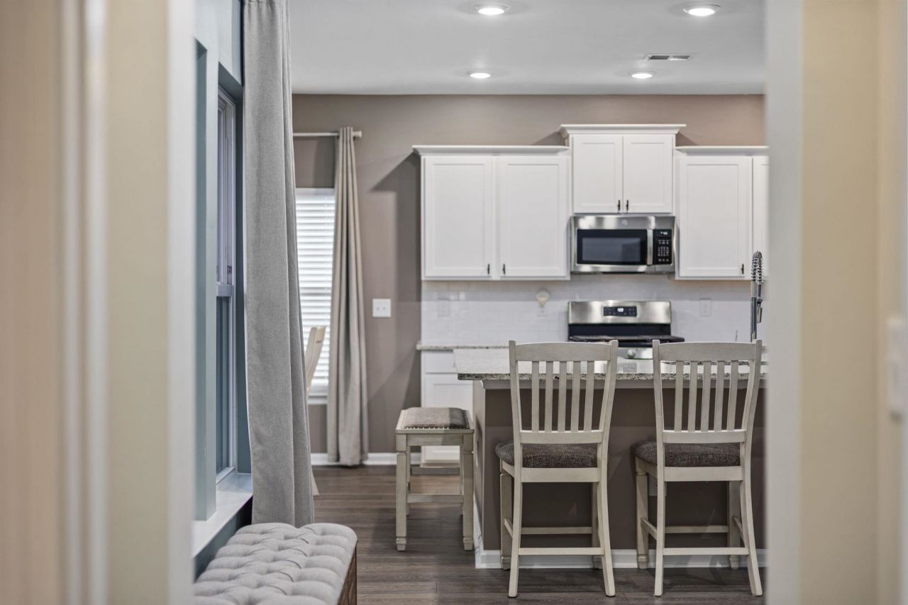 Welcome home to this stunning 3-bedroom, 2-bath lakefront home with a flex room, featuring fresh paint throughout with a stamped concrete patio that adds style and charm to the outdoor space. Perfectly situated on the water, this home offers an attached 2-car garage, professional landscaping, and a warm, inviting interior. Step through the foyer into an open-concept living area filled with natural light and serene lake views. The kitchen is the heart of the home, ideal for everyday living or entertaining, and showcases stainless steel appliances, a gas range, granite countertops, custom tile backsplash, and a breakfast bar with island. The dining area is surrounded by windows and opens directly to the screened back porch, creating a seamless indoor-outdoor living experience. The primary suite features a tray ceiling, peaceful lake views, and an ensuite bath with tile flooring, a walk-in glass shower, and a spacious walk-in closet. The flex room also boasts a tray ceiling and French doors, making it perfect for a home office, den, or guest space. Two additional bedrooms share a separate full bath, and a dedicated laundry area adds convenience. Window treatments convey, along with the washer and dryer and the TV in the flex room. Furniture is negotiable, offering a move-in-ready opportunity. Outside, enjoy the screened back porch with ceiling fan, back patio, and an epoxy-finished garage. A golf cart ride takes you straight to the beach, and residents of this sought-after community enjoy resort-style amenities including a sparkling pool, walking trails, and tennis/pickleball courts. Conveniently located just minutes from the beach, dining, entertainment, and Highway 17.